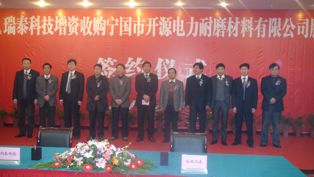 2011年3月6日,瑞泰科技增資收購寧國市開源電力耐磨材料有限公司股權簽約儀式在寧國市會議中心隆重舉
