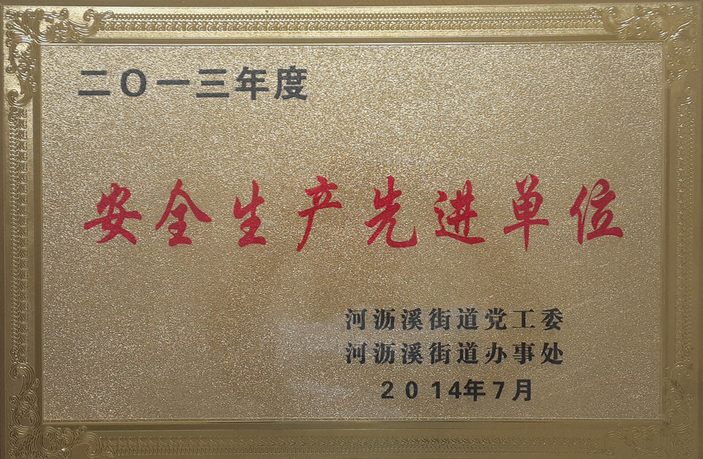 精彩的晚會結束后,河瀝溪街道辦事處和河瀝溪商會的在座領導為榮獲“安全生產榮譽單位”的單位一一頒獎并合影留念。我公司也榮幸地獲得了“安全生產榮譽單位”這一來之不易的珍貴榮譽,大家紛紛表示:一定要以此次獲獎為難得契機,扎實工作、再接再厲,爭取把我公司的安全生產工作推向一個新的高度!